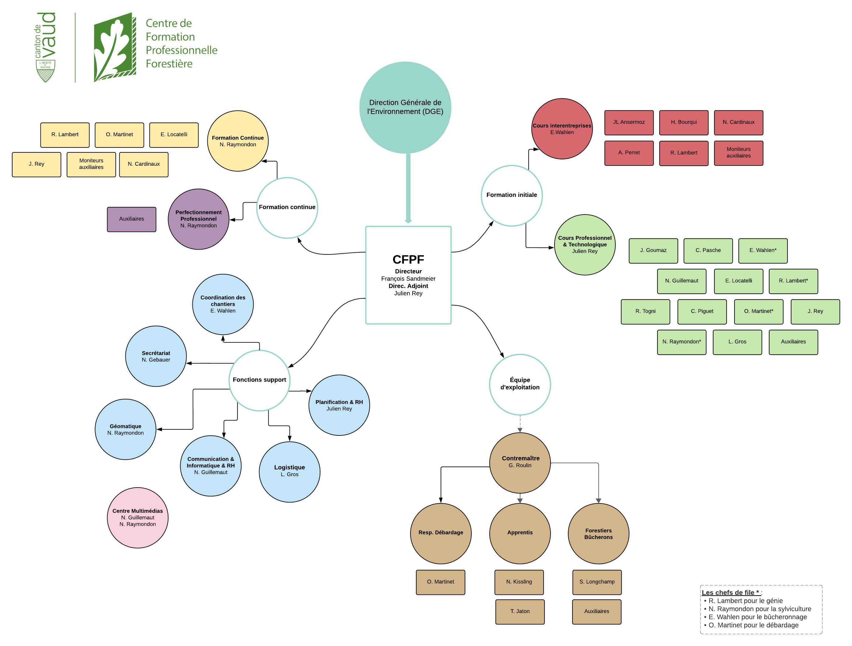 Le Centre forestier fonctionne en tant qu’école professionnelle sous l’égide de la direction générale de l’environnement du canton de Vaud, respectivement l’inspection cantonale des forêts.