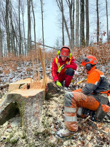 Outre les techniques de bûcheronnage qui sont revues et peaufinées, les apprenti.e.s de 2ème ont intégré lors de cette semaine de cours l'organisation d’un chantier dans son ensemble, en intégrant la notion de rendement.