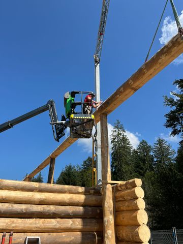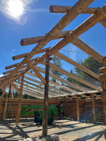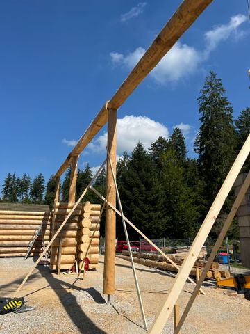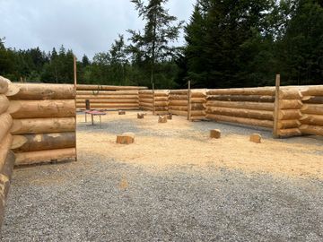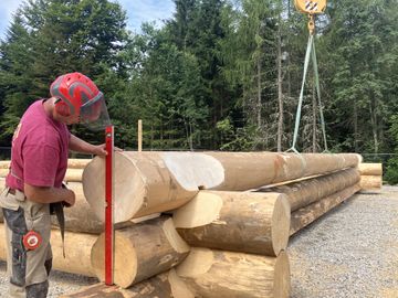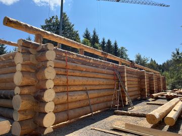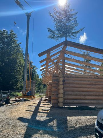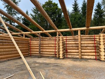 C’est une technique traditionnelle de construction utilisée principalement pour des projets architecturaux à caractère écologique et traditionnel, souvent associés à des environnements naturels tels que les zones forestières où elles s'intègrent harmonieusement à leur cadre naturel (ex : hangar, refuge…). Elle consiste à empiler des rondins de bois brut sans les scier ni les dégrossir, de manière à créer les murs porteurs de la structure. Les rondins sont ensuite assemblés par des encoches ou des joints à queues d'aronde pour assurer une meilleure stabilité.