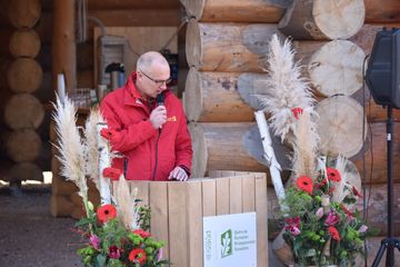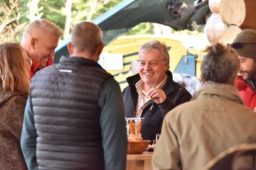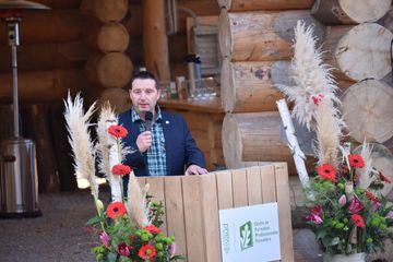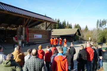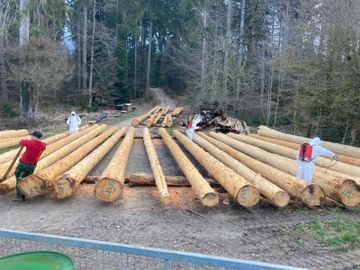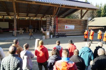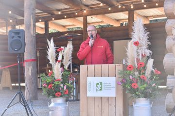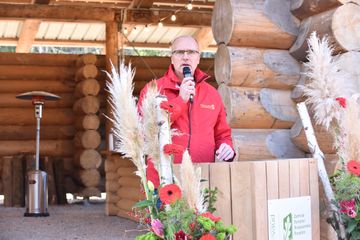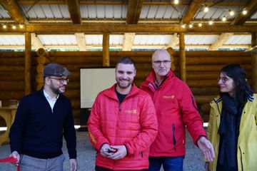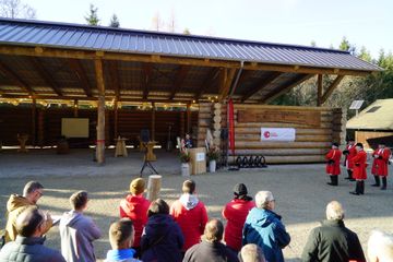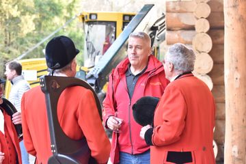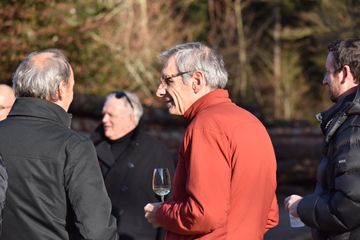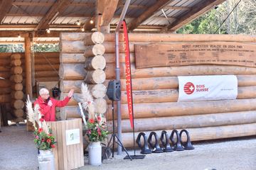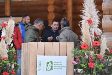 D'ores et déjà labellisé Bois Suisse, ce hangar est dédié à la fois à la gestion forestière et à la formation professionnelle. Il offre un espace de stockage pour le bois de la forêt cantonale, ainsi qu’un couvert pour les travaux de l’équipe forestière et à terme, il accueillera des formations pratiques. Les prises de paroles ont souligné la technicité de la fuste, la collaboration avec des entreprises locales, la montée en compétences de notre équipe sans oublier le lien avec la politique forestière 2040 (sur les questions de relève dans le milieu forestier) et l’exemplarité du canton de Vaud à soutenir la construction d’ouvrage en bois local.